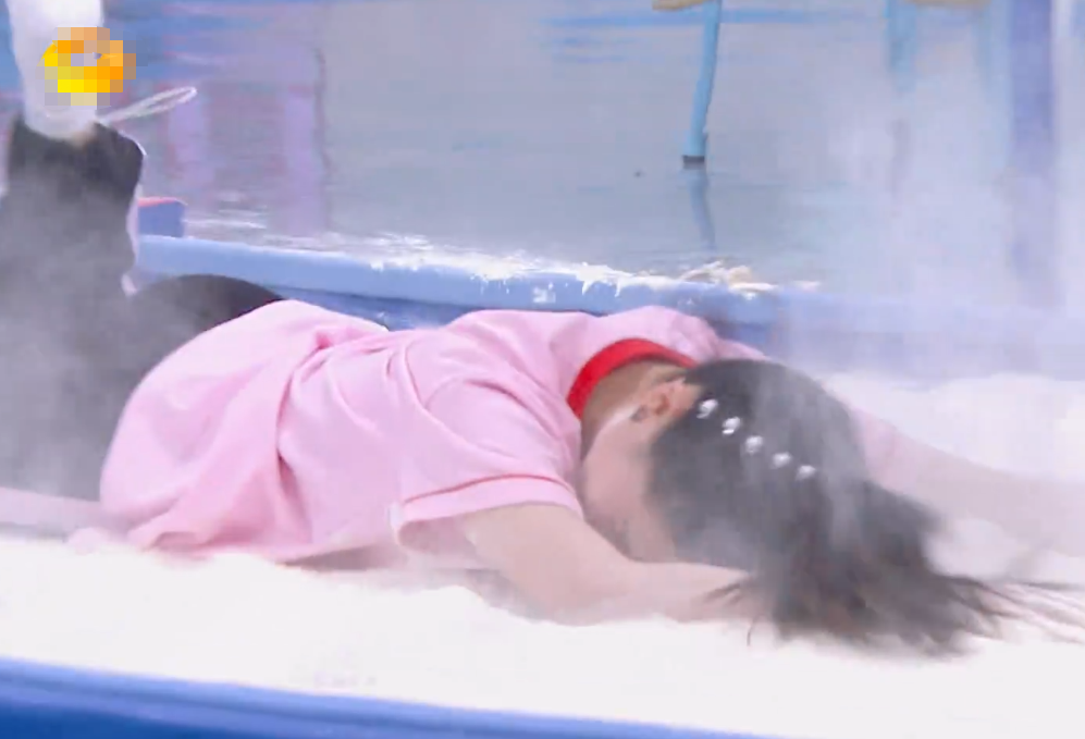 后来大家提议让金子涵和张昕宇搭档组合玩一次,其实是想借机让金子涵为张天爱“报仇”。不过还没等大家反应过来,张昕宇自己正面向上倒进了面粉池里,让金子涵都大吃一惊。