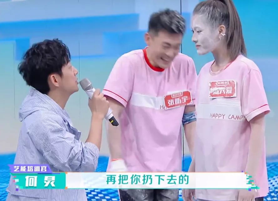 如果说第一次松手还可以说是无心的失误,但同样情况出现了两次就说不过去了。后来两位搭档又试了一次,结果这次就在张天爱要成功咬到甜甜圈时,张昕宇在众目睽睽之下竟然又一次松开手。动作明显到海涛都大喊:“够了!”